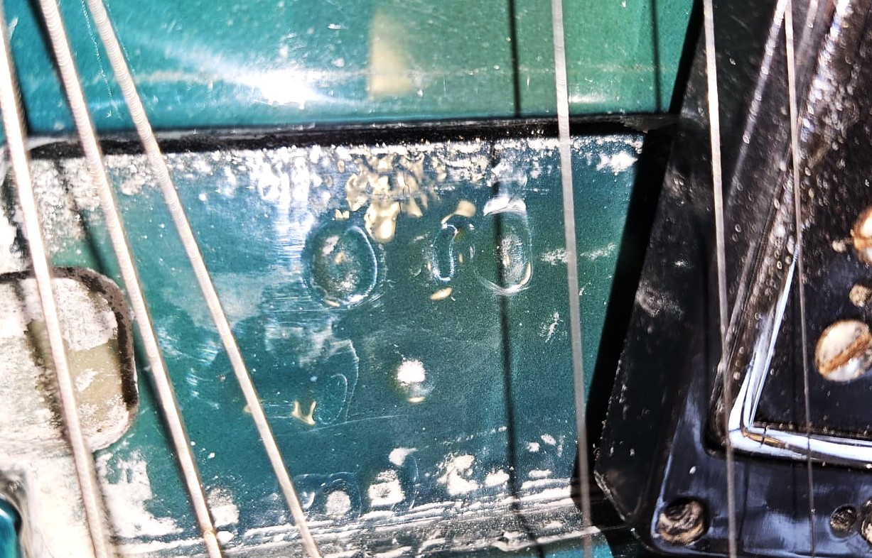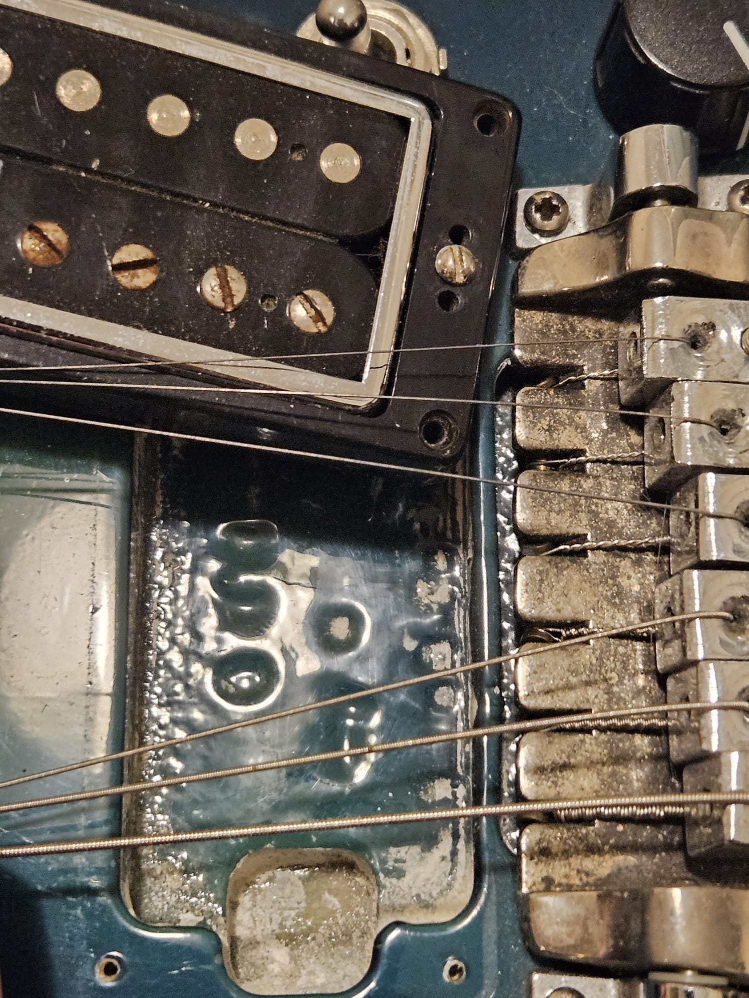 Pas de frette zéro, pas d'autocollant avec un numéro de série au bas du corps mais un petit "4" gravé à la place (serait-ce la numéro 4 ?), pas de date visible dans les deux cavités micros, et des micros Seymour Duncan au lieu des Benedetti qu'on trouve typiquement sur ce modèle, sont-ils d'origine ?