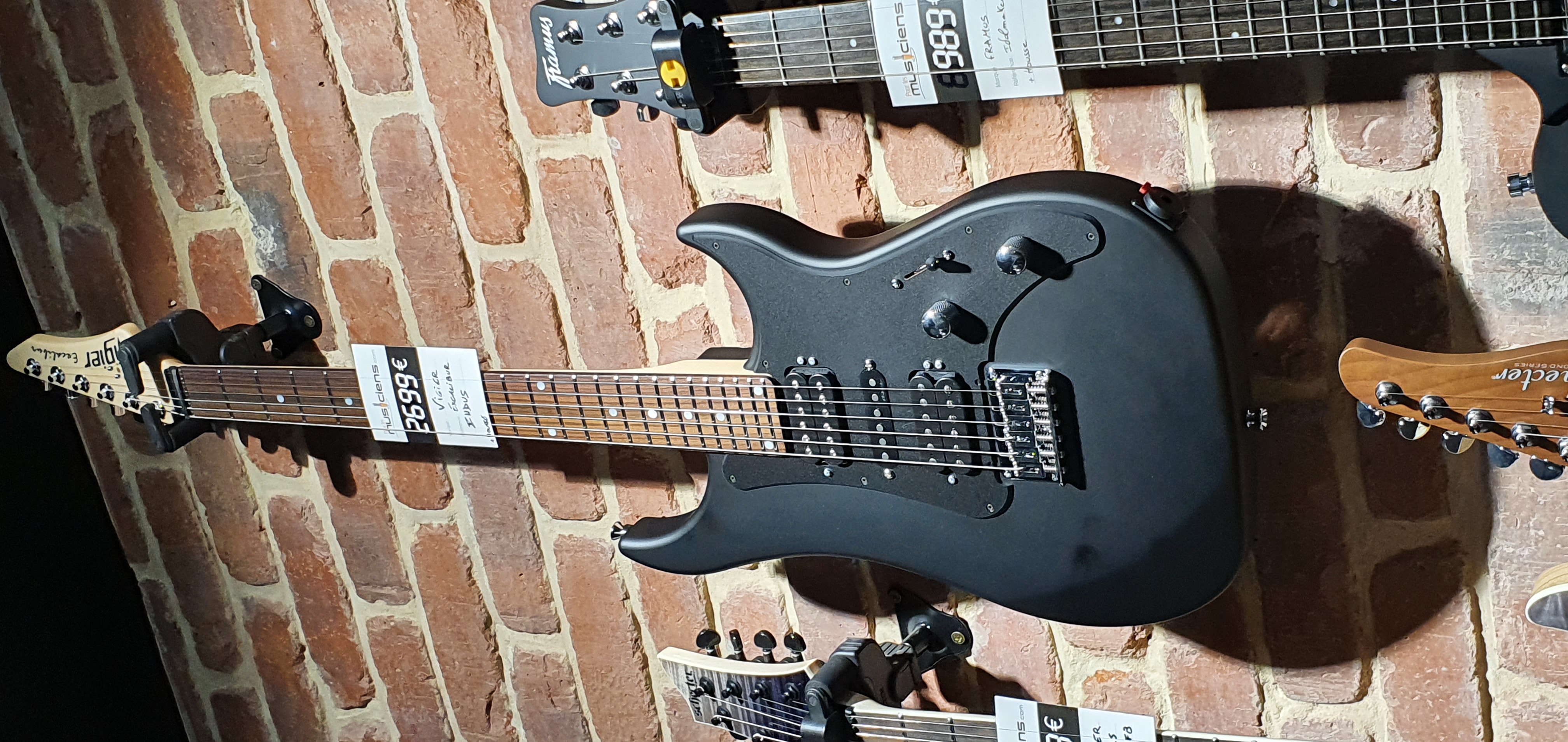 J'ai repéré en magasin une Excalibur indus. Elle est équipée d'un pickguard d'Excalibur spécial et donc en config HSH.