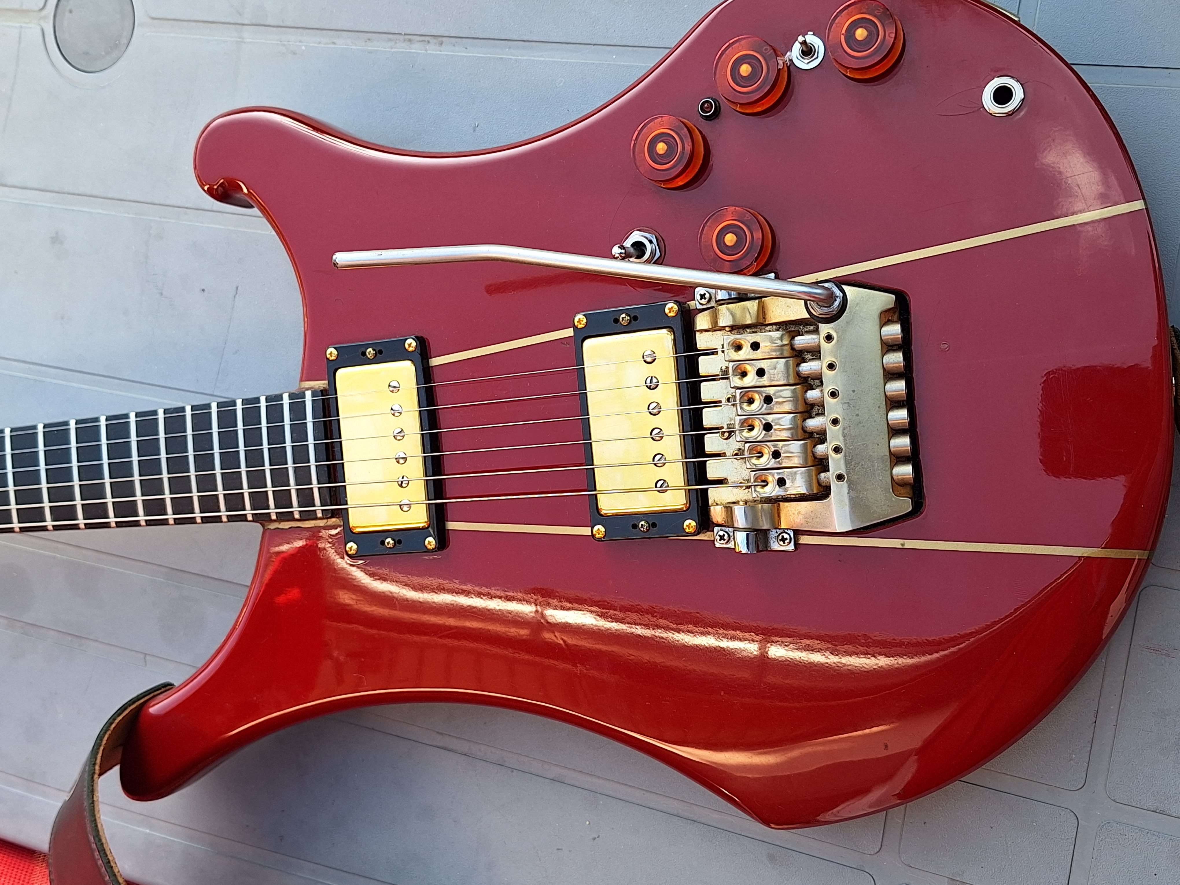 J'ai cette guitare depuis les années 80 je n'ai aucune idée de quoi est faite la caisse avec son manche conducteur. En revanche la touche est en ébène, et sous celle-ci il y une sous touche en laiton sur toute la longueur du manche d'environ 1mm d'épaisseur. je n'ai jamais revu cette configue chez vigier. Déjà la frette zéro était là à cette époque avec son vibrato et son éléctronique active que j'ai déconnectée. Quels que soit les micros que l'on monte dessus ça marche, bizare parce que sur d'autres grattes c'est pas toujours le cas..Son défaut serait peut être sa tête ou manche un peu lourd, comme les SG Guibson. Au jour d'aujourd'* avec les nouvelles technos je ne suis pas sûr que l'électronique active sur une guitare apporte quelque chose.